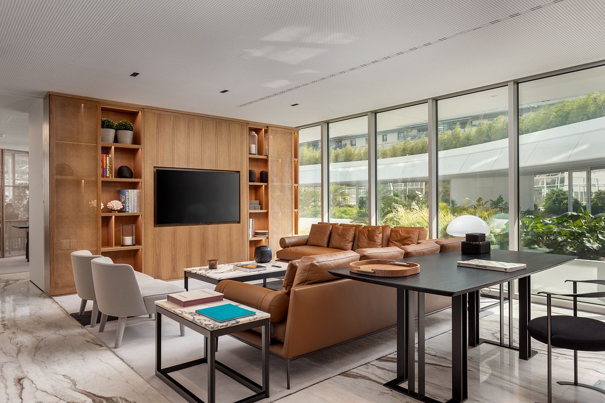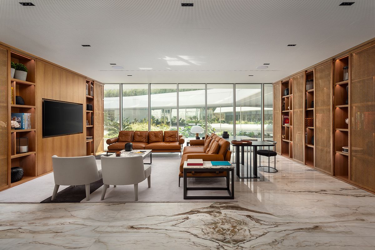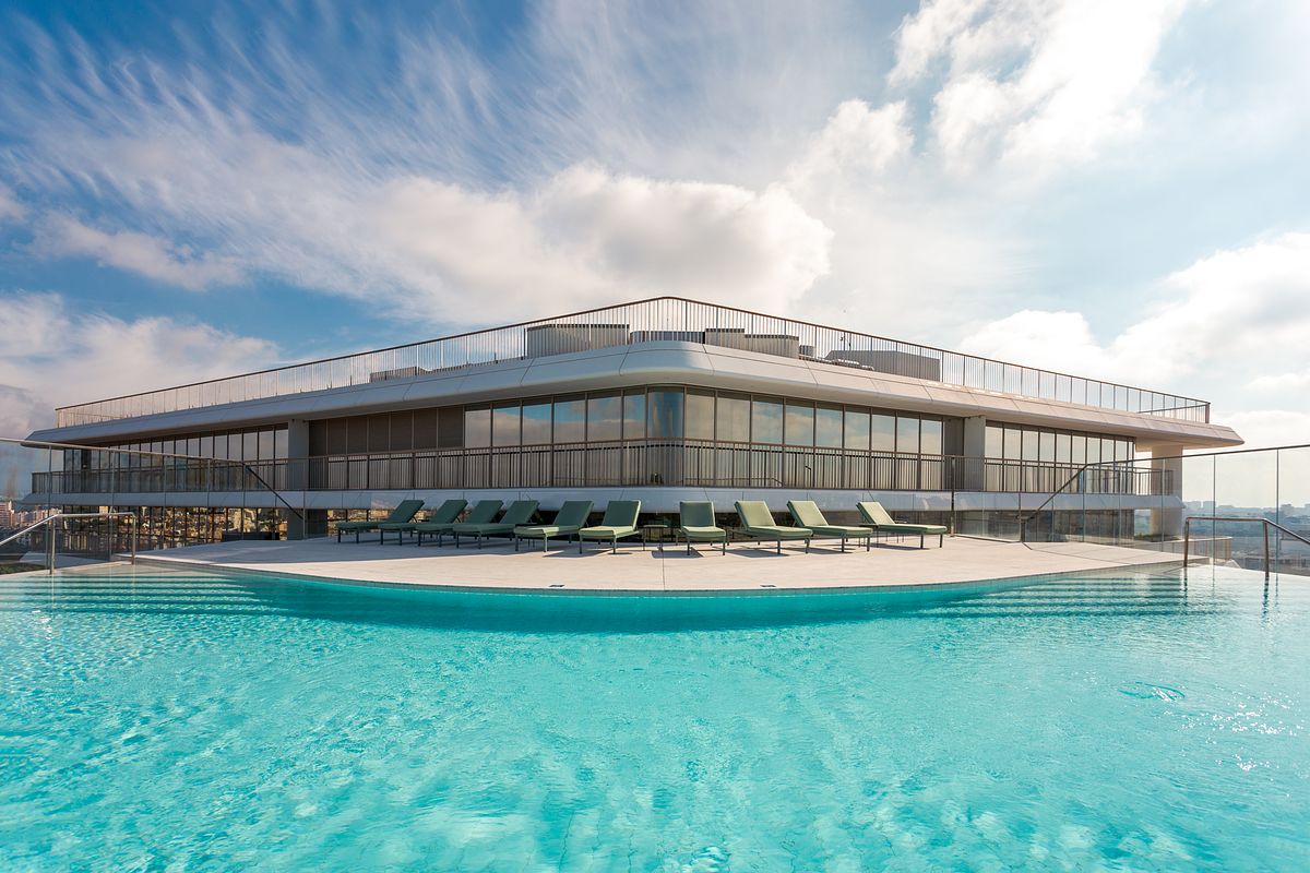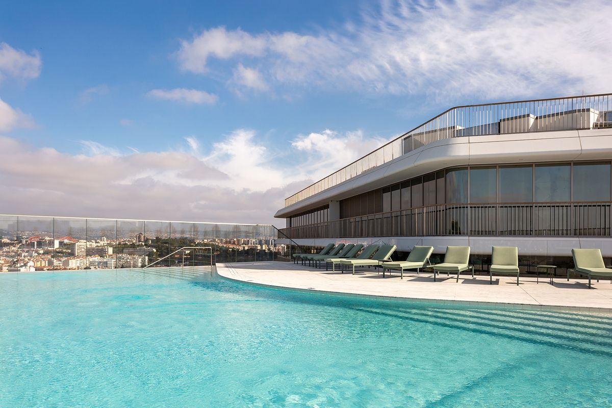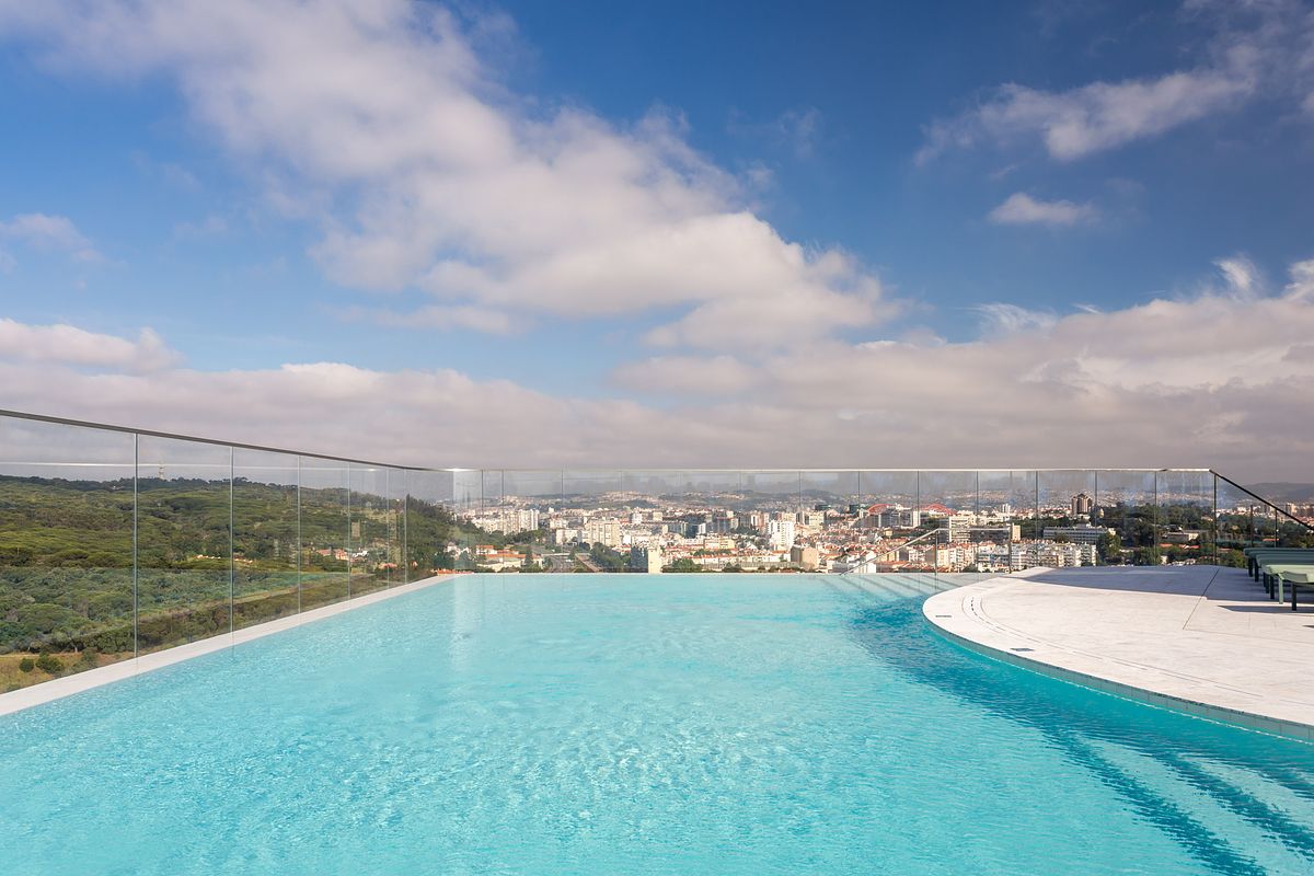 Cada ala possui uma organização tipológica própria, que resulta da hierarquização do sistema de vistas e exposição solar. De linhas modernas e elegantes, a altura é modelada com arte e engenho pelo desenho liberto de arestas vivas, adoçando o imenso corpo ao horizonte, enfatizando-lhe a verticalidade. A imagem final resulta fluida e de uma simplicidade quase paradoxal. Alguns terraços ajardinados pontuam a torre, humanizando-a. O projeto privilegia uma forma de habitar de excelência, sem concessões. in Saraiva+Associados