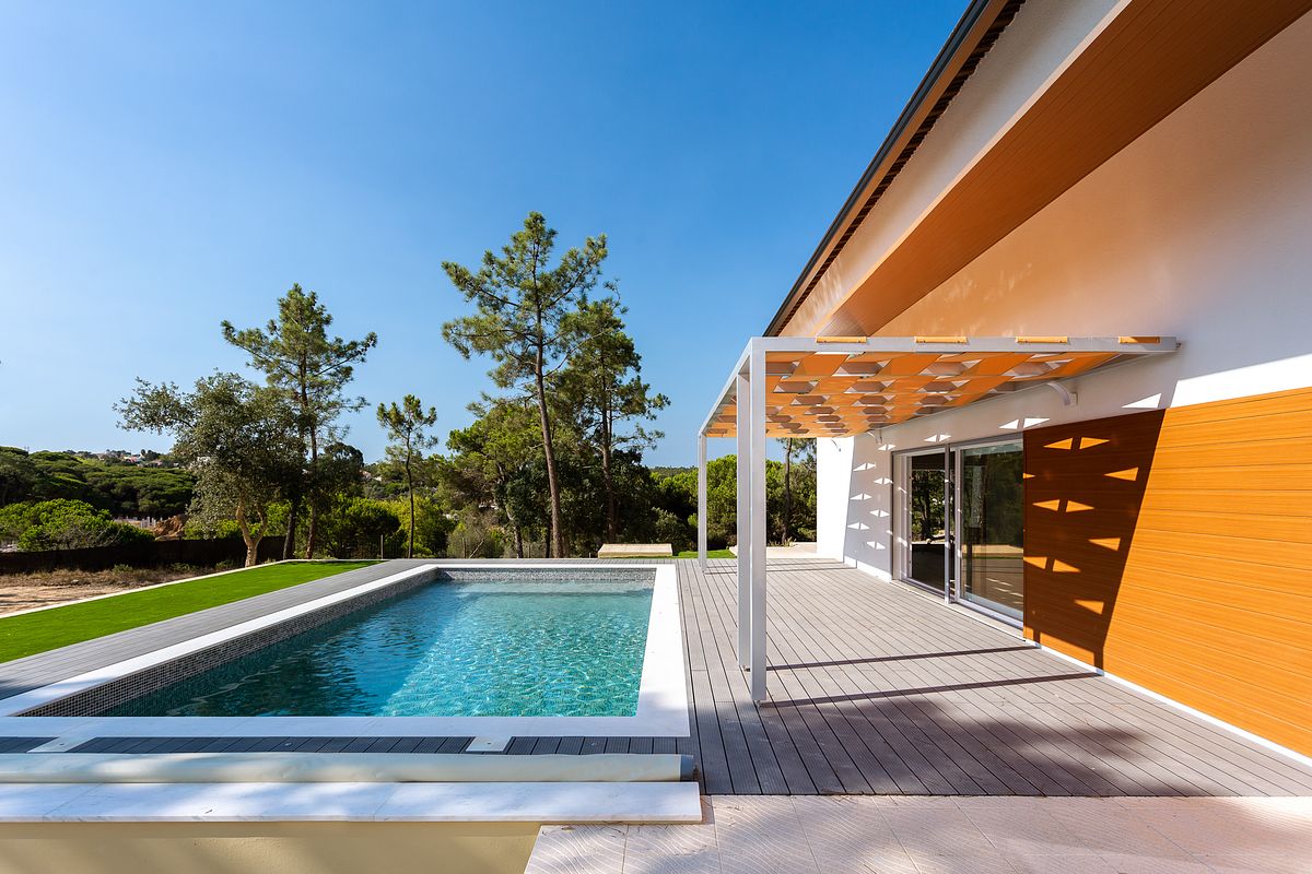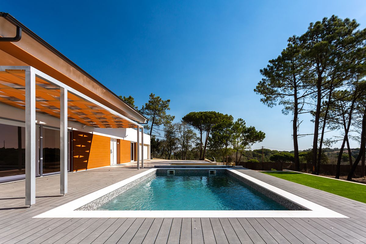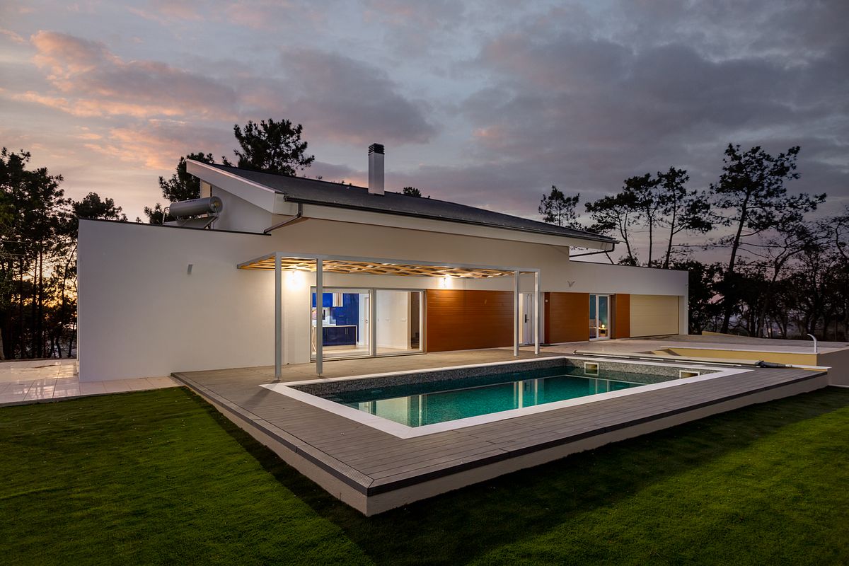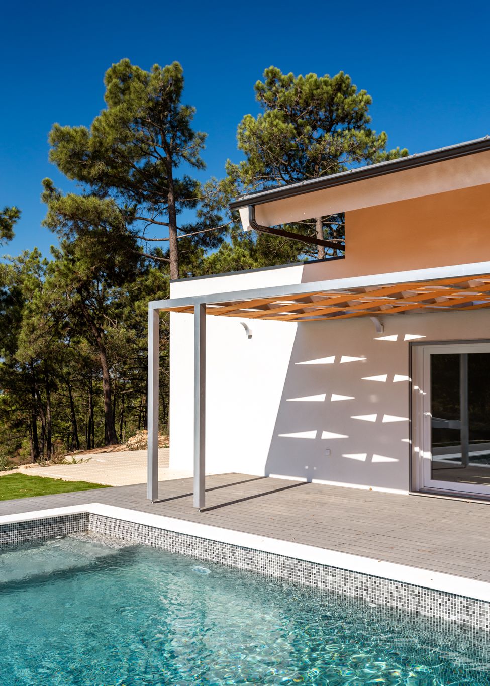 Resumindo, esta moradia é resultado de uma organização intencional de espaços interiores e exteriores para um uso privado e de laser dos proprietários, com características muito próprias para uma moradia unifamiliar.