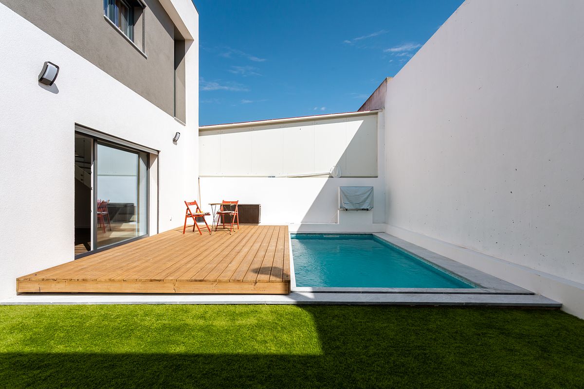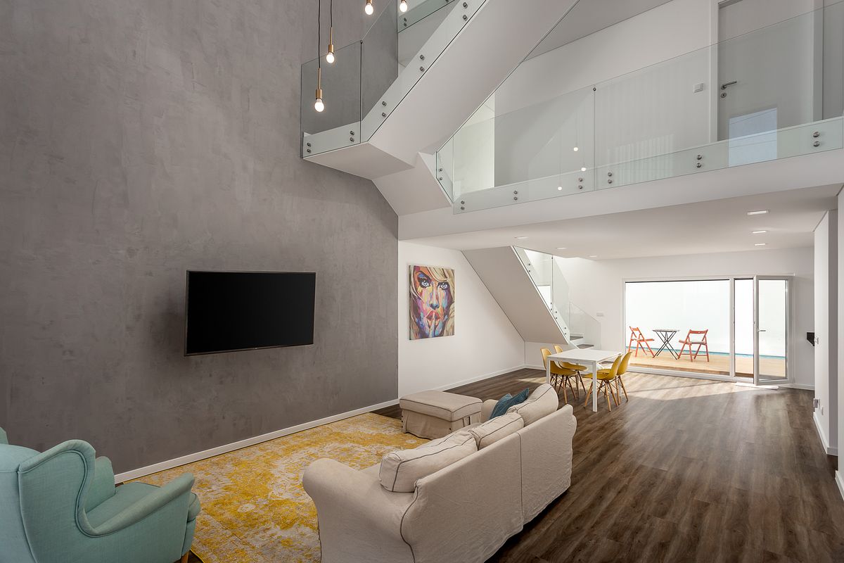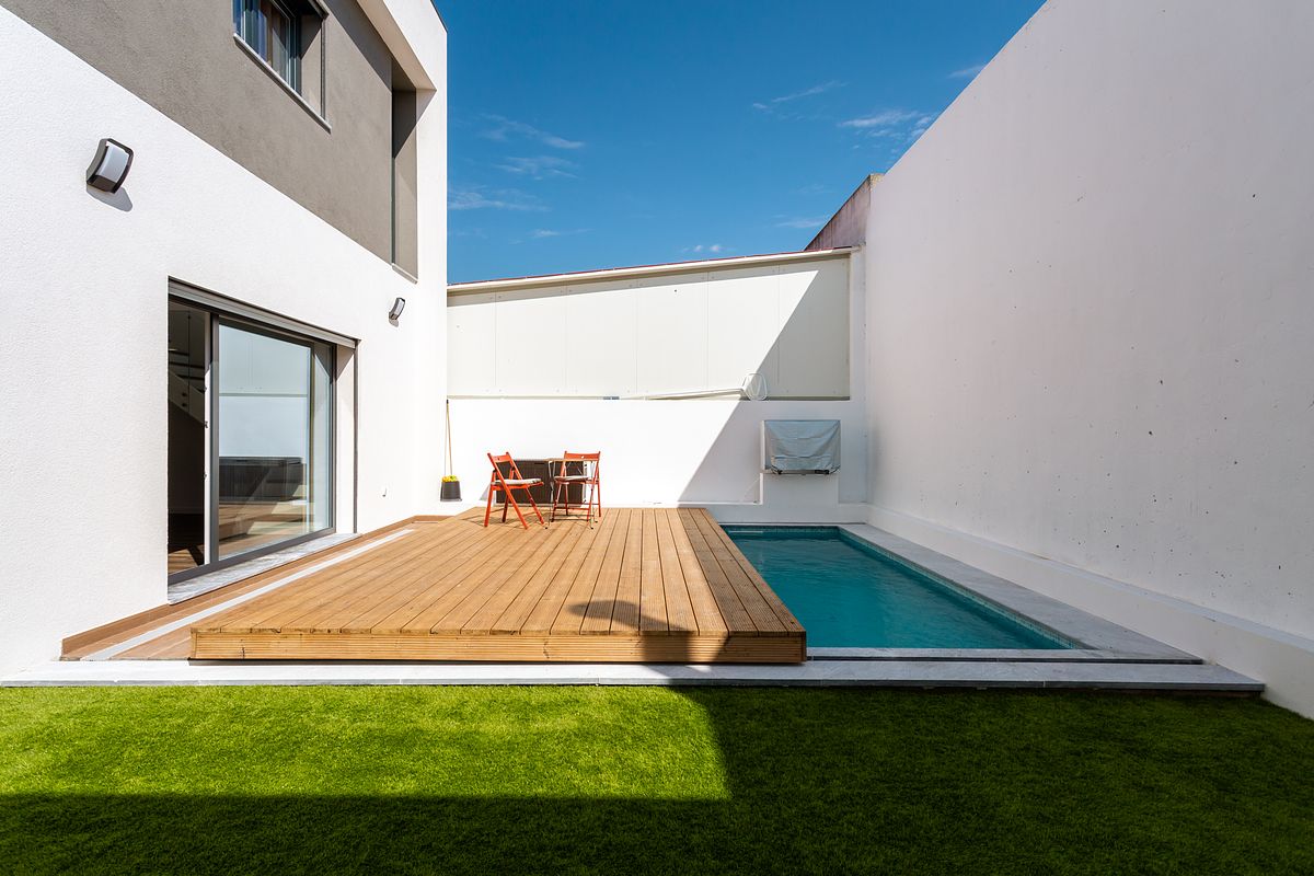 Esta Moradia é resultado de uma organização inteligente dos espaços interiores com a impressionante componente arquitectónica do mezanino até ao sótão. A zona posterior do edifício é inteiramente para uso privado e de laser dos proprietários, com características de reserva de privacidade.