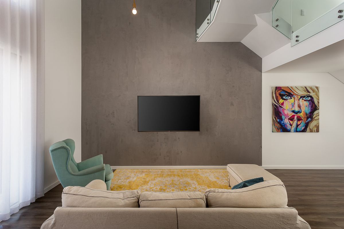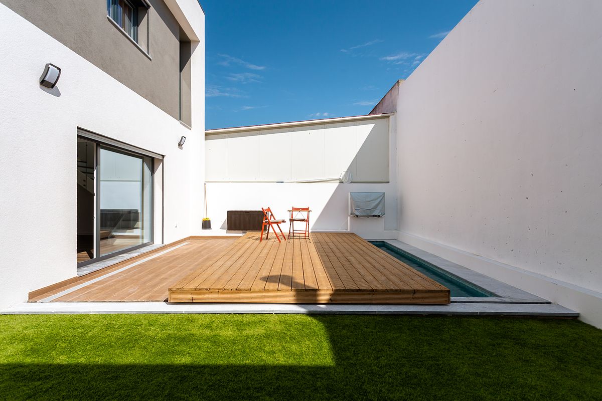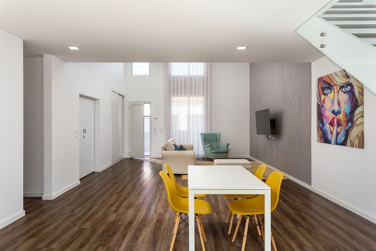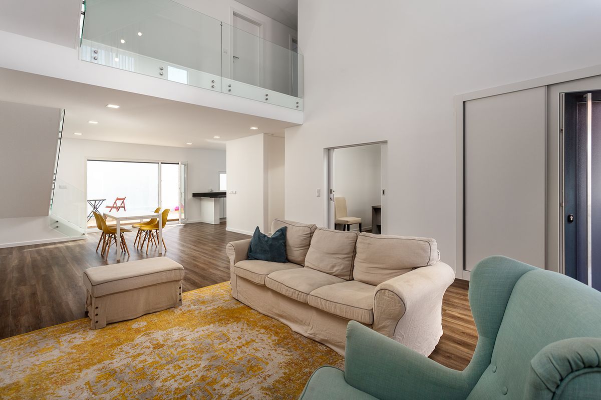 Esta Moradia é resultado de uma organização inteligente dos espaços interiores com a impressionante componente arquitectónica do mezanino até ao sótão. A zona posterior do edifício é inteiramente para uso privado e de laser dos proprietários, com características de reserva de privacidade.
