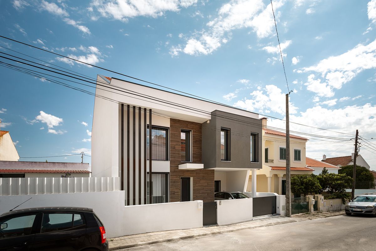 Moradia implantada no Concelho do Montijo, numa zona habitacional de loteamento de moradias. O corpo do edifício eleva-se a dois pisos com o aproveitamento do sótão.Os Pisos estão acima da cota da soleira, sem nenhum abaixo. No Piso 0, encontramos as áreas comuns: uma ampla sala com impressionante vista para o mezanino do piso 1 e sótão. Este amplo espaço em openspace estende-se pela zona de refeições até à cozinha, onde se encontra um acesso acesso directo ao alpendre da piscina; um pequeno quarto com utilização de escritório e uma instalação sanitária de apoio. Ainda na Cozinha podemos encontrar uma dispensa com zona de lavandaria.