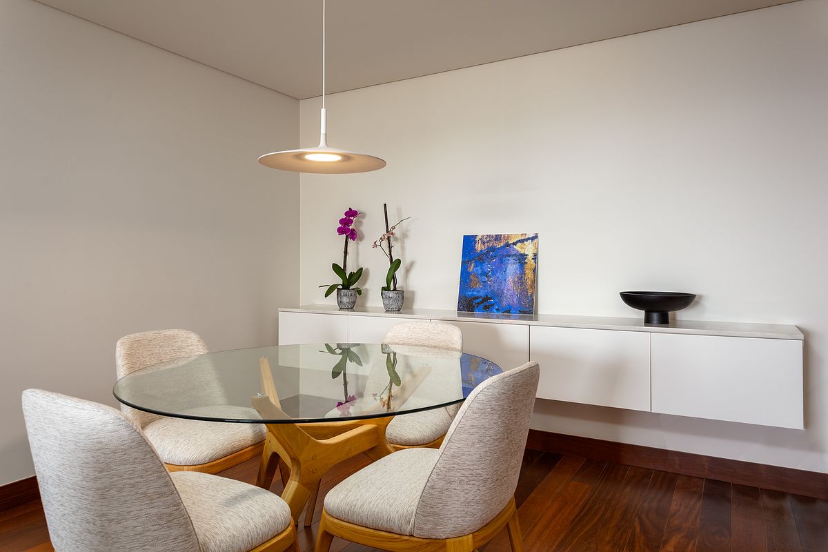 A fotografia imobiliária em imóveis com vista para o oceano exige uma abordagem técnica cuidada. Em muitas reportagens convencionais, a vista exterior acaba por se perder, ficando subexposta ou pouco legível, comprometendo a perceção real do imóvel. Neste projeto, o trabalho de iluminação interior foi desenvolvido com recurso a flash de forma equilibrada, permitindo manter a naturalidade da luz existente no interior e simultaneamente, revelar com clareza a linha do mar e a relação visual entre o espaço interior e o exterior.