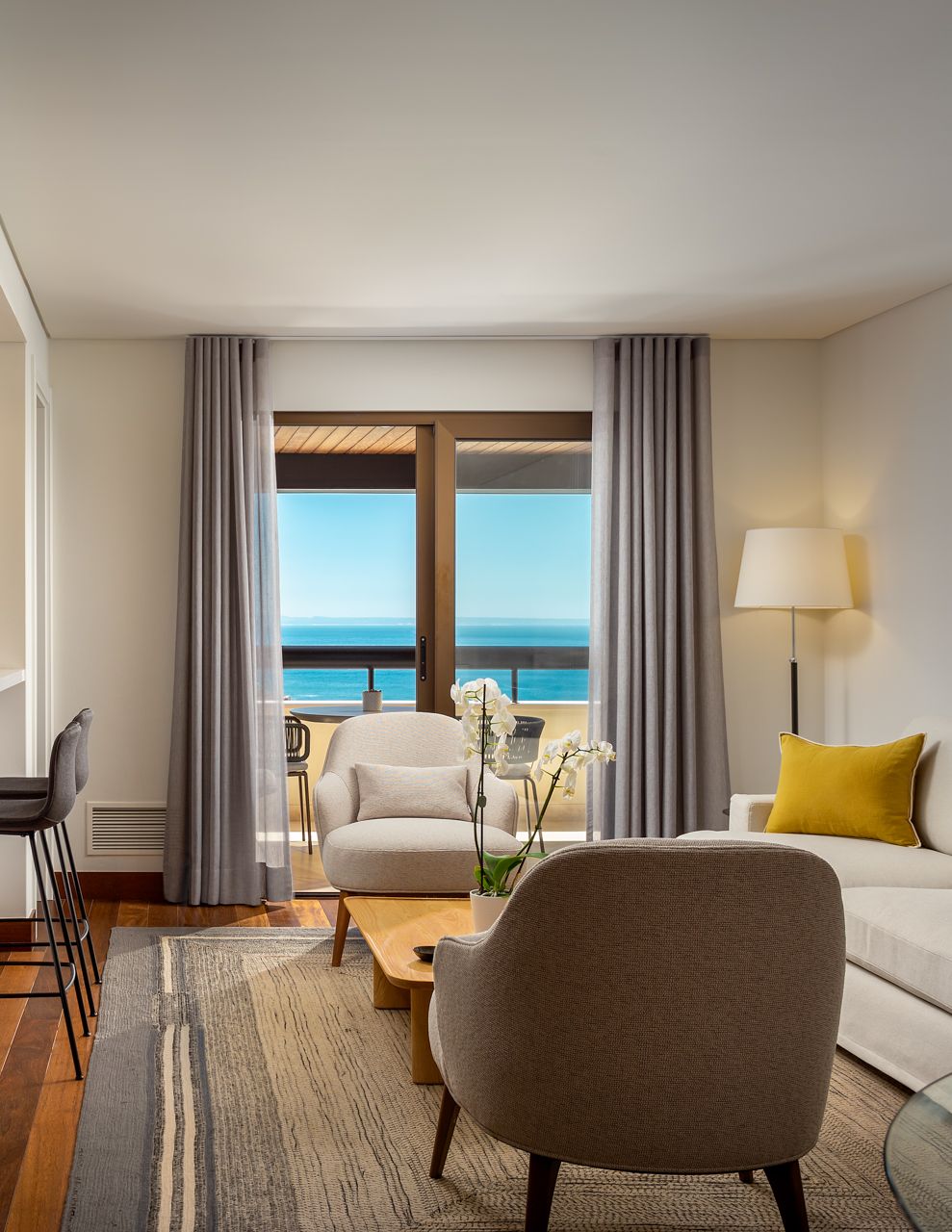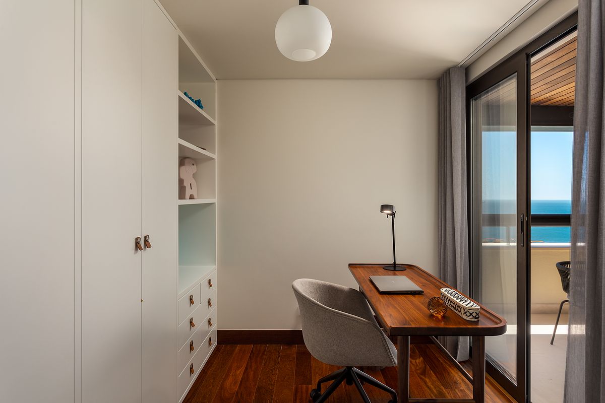 Esta reportagem fotográfica foi realizada num apartamento inserido no Condomínio Atrium, localizado na Guia, Cascais, uma das zonas residenciais mais valorizadas da linha de Cascais. Para além da qualidade do condomínio e das áreas comuns, este imóvel distingue-se pela sua vista mar aberta, um dos seus principais ativos e um fator decisivo no seu posicionamento no mercado imobiliário.