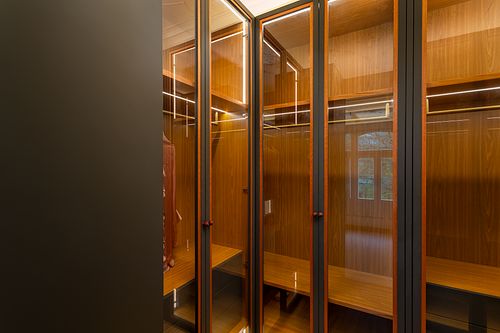 - Armários/Vitrines e Gavetas lacadas, com interior forrado a madeira de cerejeira, com iluminação incorporada.