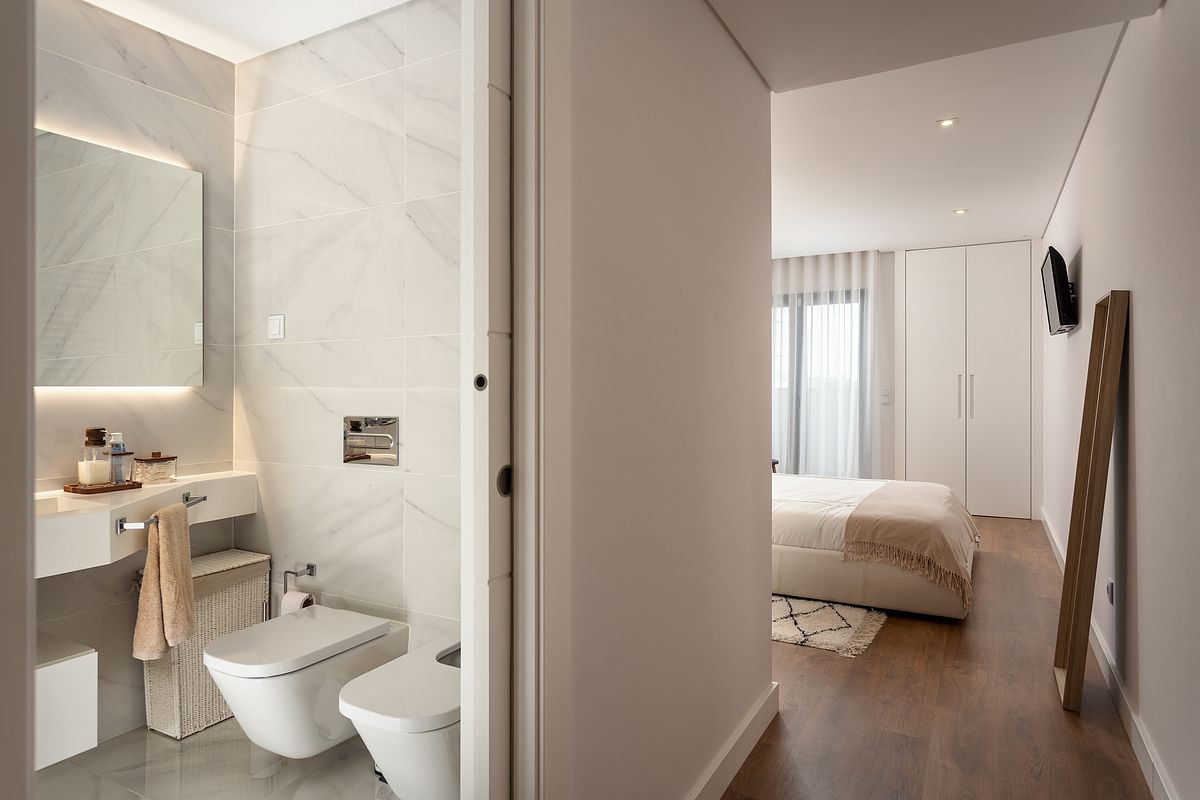 Esta reportagem fotográfica foi realizada num apartamento T2 integrado no Empreendimento Pinus, um projeto residencial de gama alta localizado no Montijo, concebido para responder às exigências de um mercado cada vez mais atento à qualidade, conforto e imagem.