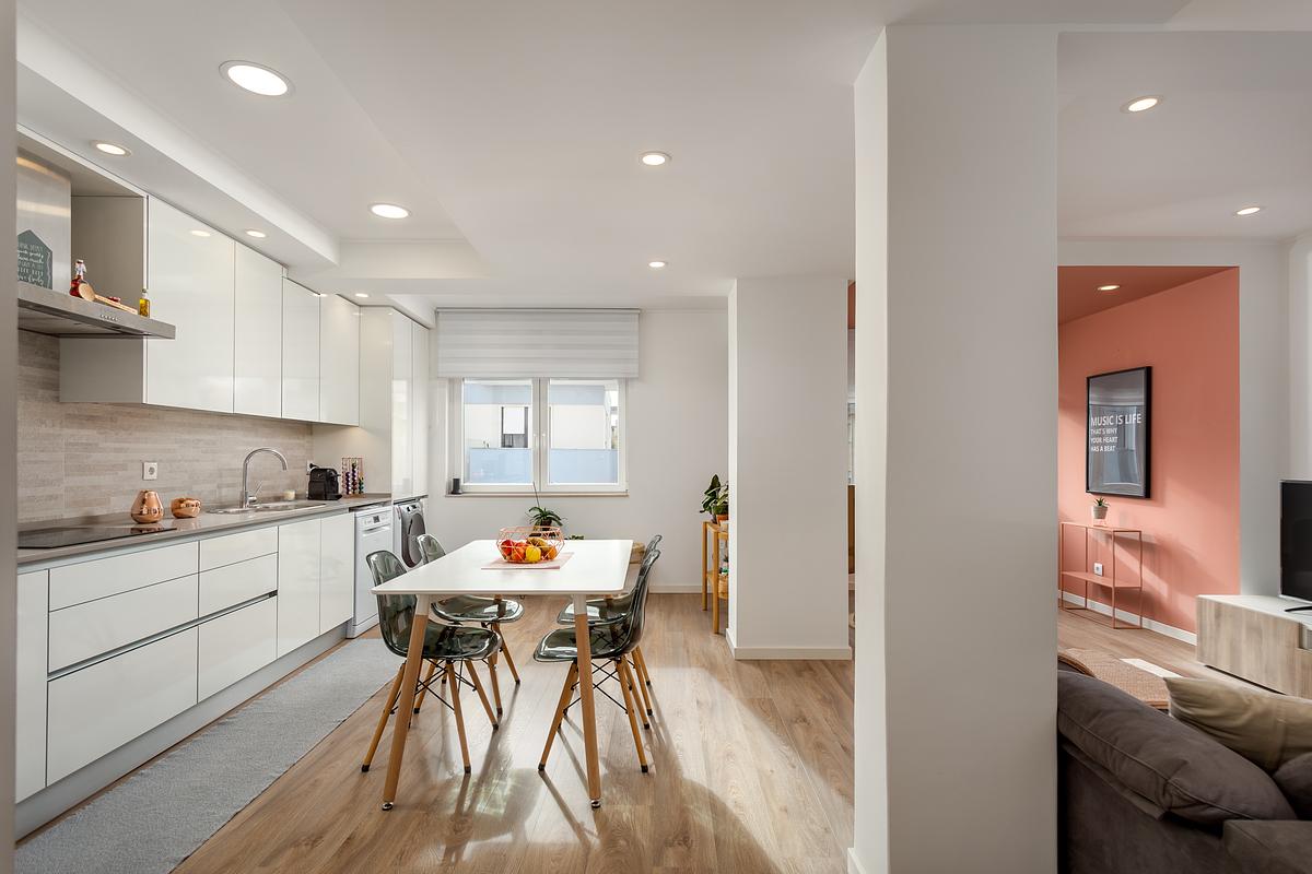 Esta reportagem fotográfica foi realizada num Apartamento T2 em Queijas, um imóvel onde a qualidade do espaço e a coerência dos interiores exigiram uma abordagem fotográfica cuidada e tecnicamente rigorosa. Em projetos deste género, o desafio não está em criar impacto artificial, mas em valorizar aquilo que já está bem pensado, respeitando cores, materiais e proporções.
