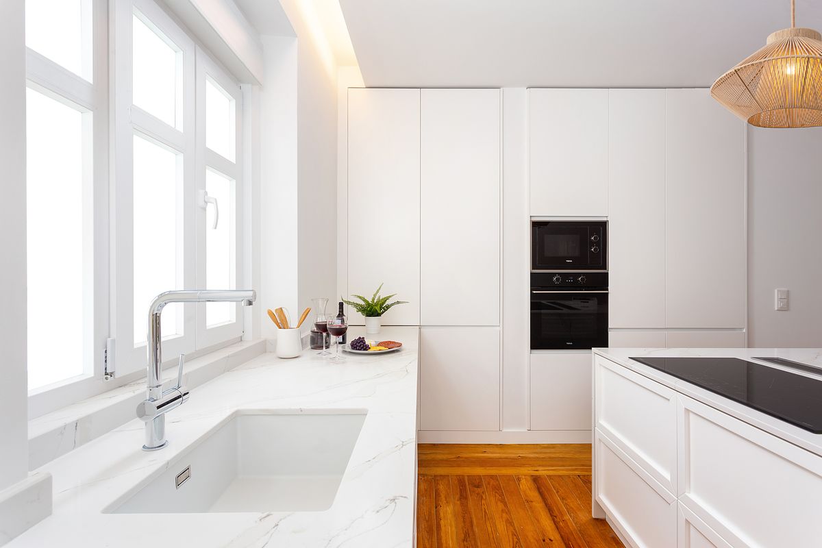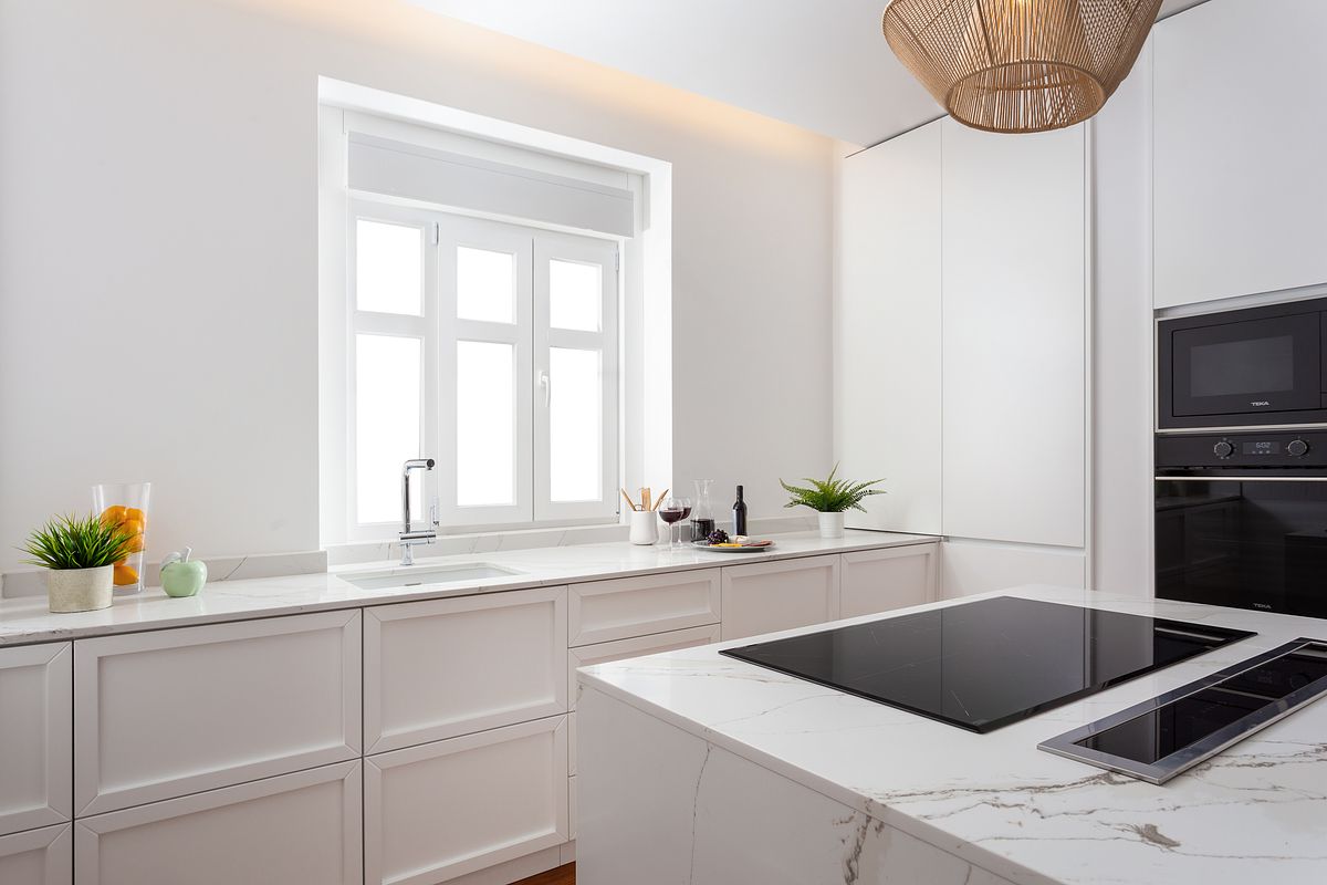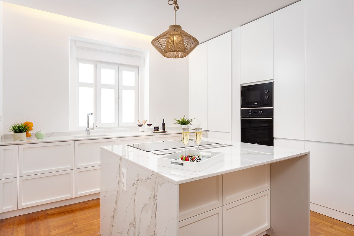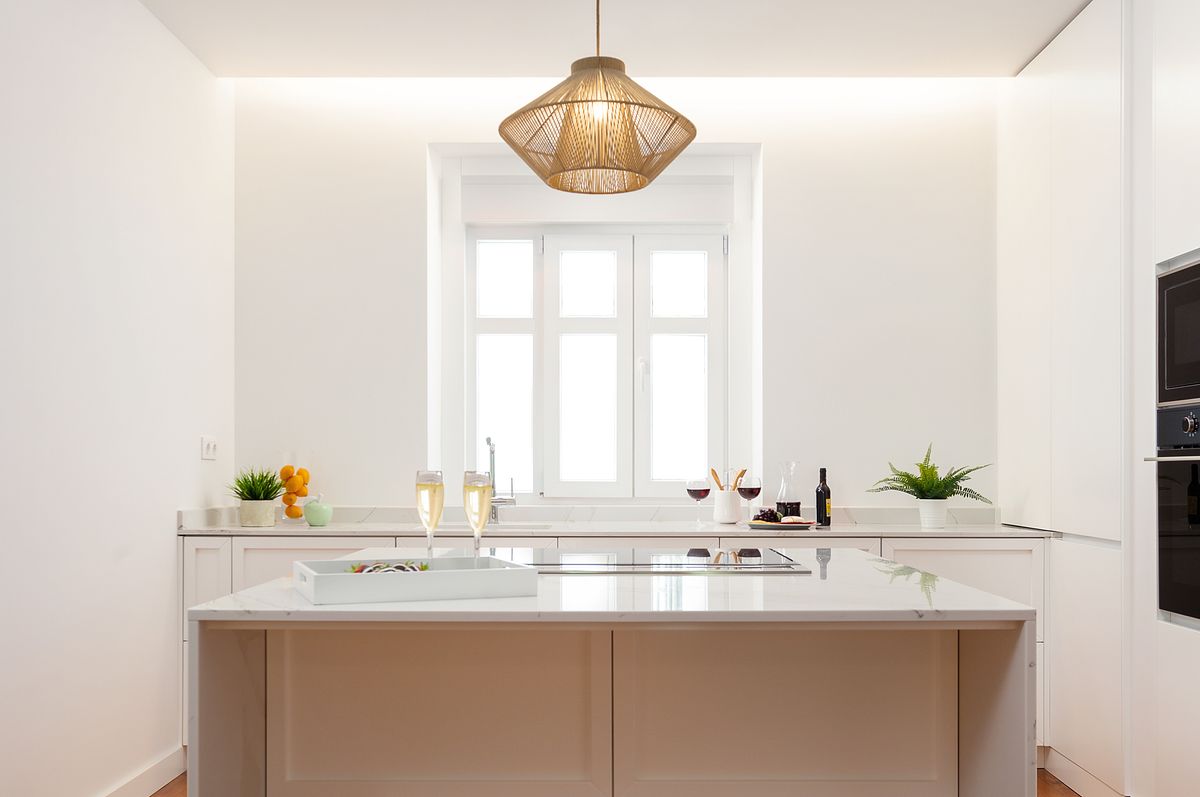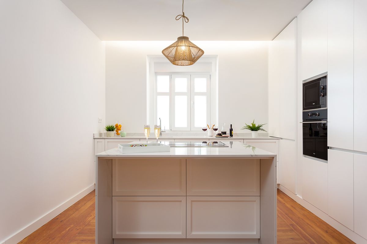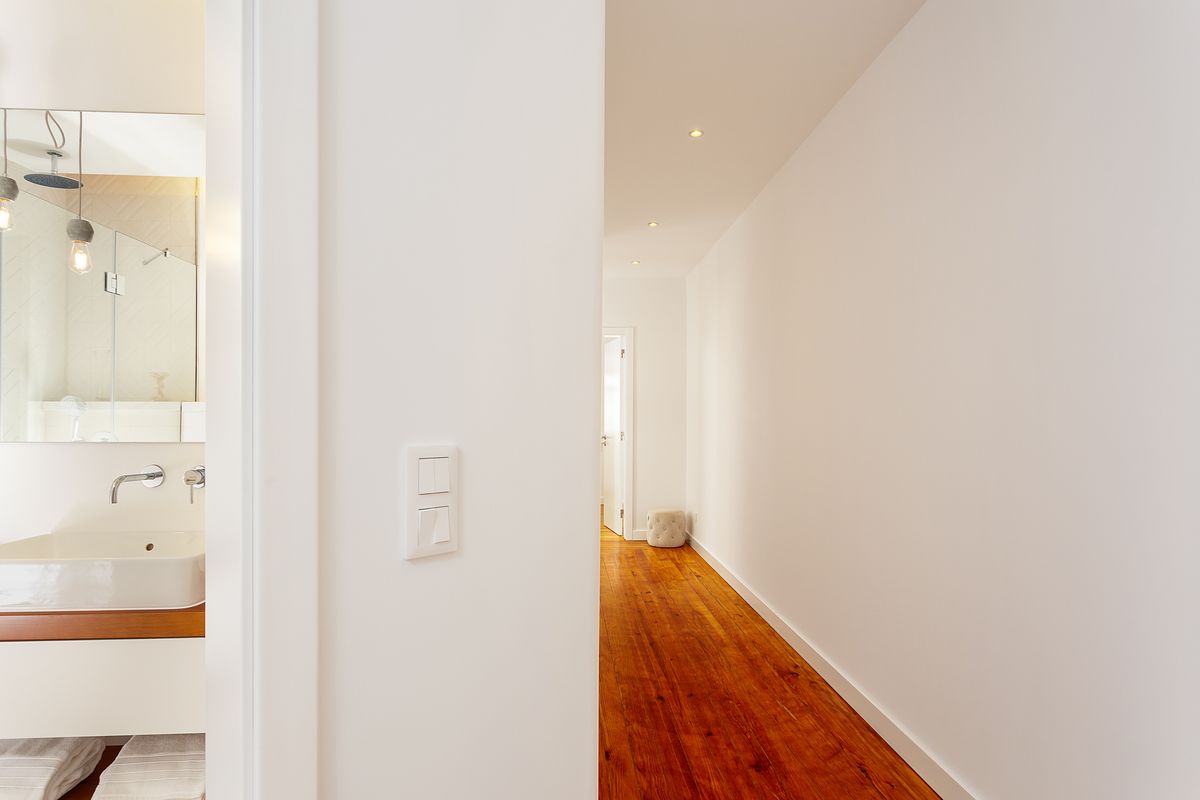 O imóvel apresenta linhas claras, tons neutros e um soalho de madeira original totalmente recuperado, elemento identitário que confere carácter e continuidade a todo o espaço. A reabilitação incluiu tetos falsos com iluminação indireta, permitindo um ambiente visualmente confortável e contemporâneo.