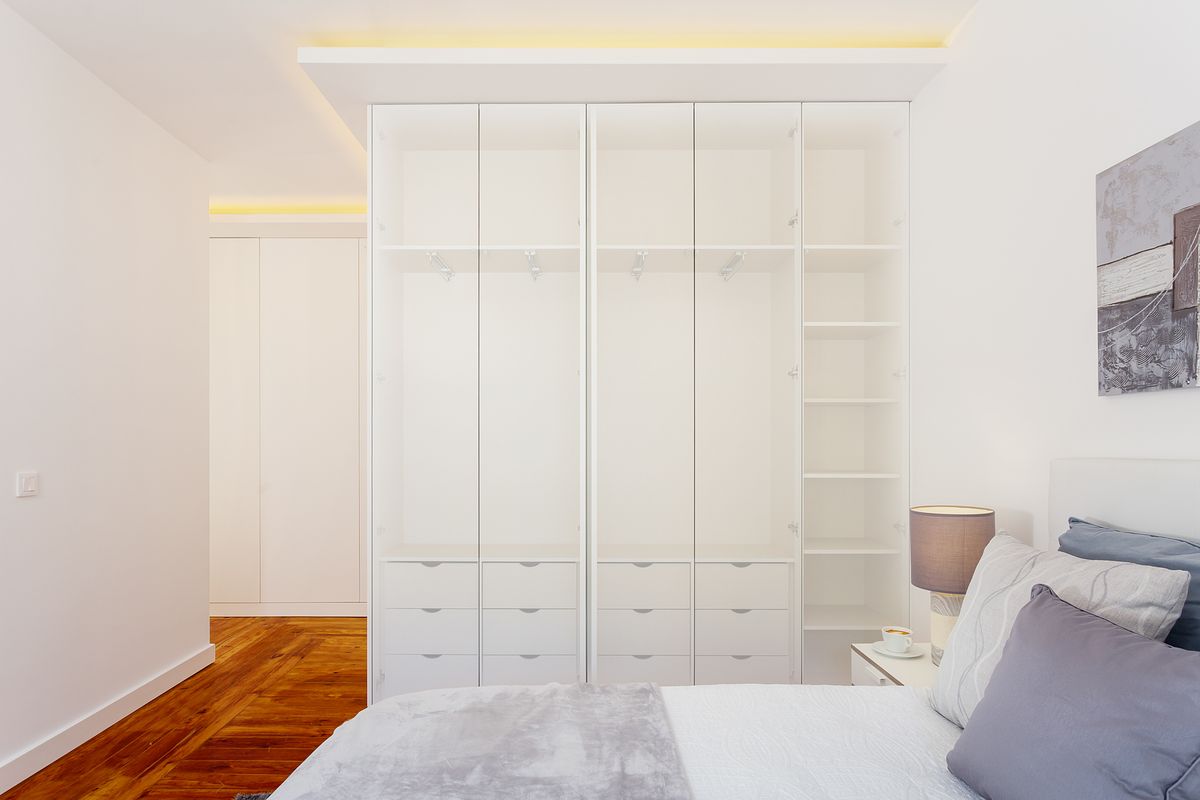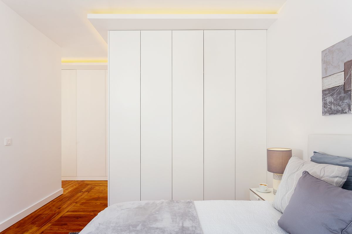 Nas casas de banho, foi utilizado um trabalho de iluminação técnica com recurso a flash, essencial para revelar corretamente as texturas e relevos das cerâmicas, garantindo fidelidade cromática e leitura precisa dos materiais. Em várias imagens, foi explorada a transparência dos roupeiros, permitindo visualizar o interior e a organização dos espaços de arrumação, um detalhe importante na comunicação imobiliária.