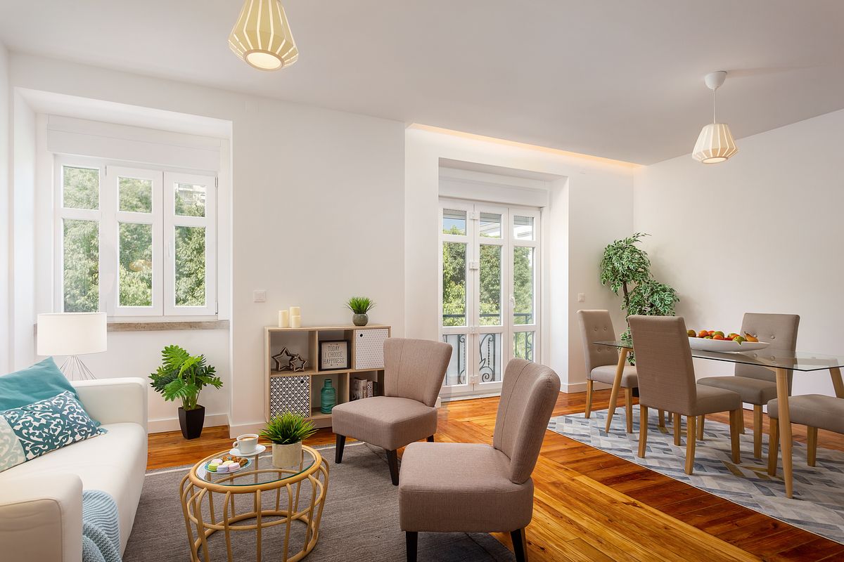 Reportagem fotográfica de um apartamento T3 localizado nas Avenidas Novas, em Lisboa, inserido num edifício clássico totalmente reabilitado. Este imóvel foi alvo de um projeto de homestaging completo, pensado para potenciar a leitura dos espaços e facilitar a perceção real da escala, funcionalidade e conforto por parte de potenciais compradores.