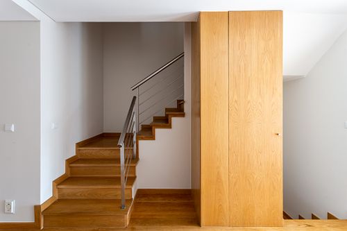 No interior do imóvel, a fotografia foi orientada para destacar a luminosidade natural, a fluidez dos espaços e a neutralidade dos acabamentos, permitindo uma leitura clara das áreas habitáveis e do seu potencial de utilização. Os enquadramentos foram pensados para favorecer a proporção dos espaços, a entrada de luz e a ligação visual aos exteriores, elementos fundamentais em fotografia imobiliária destinada à venda.