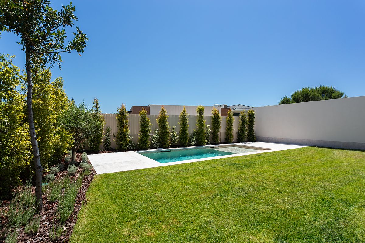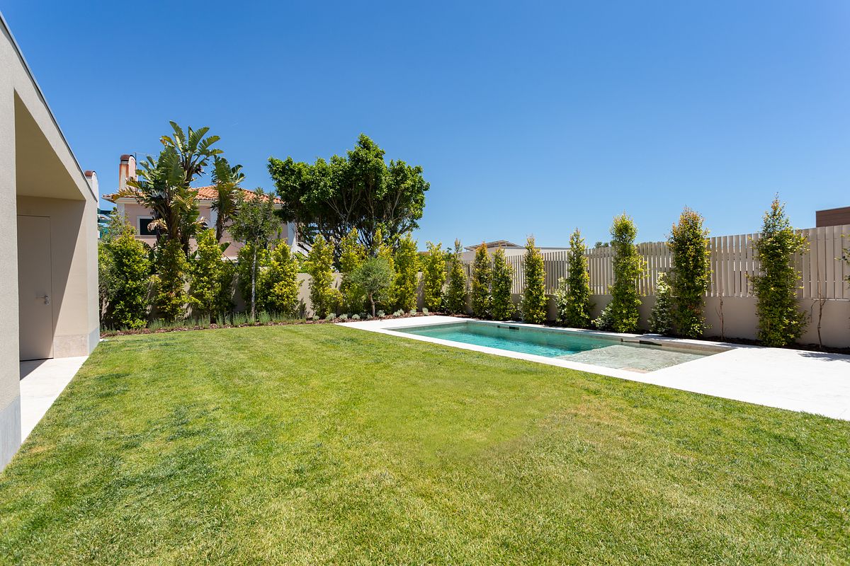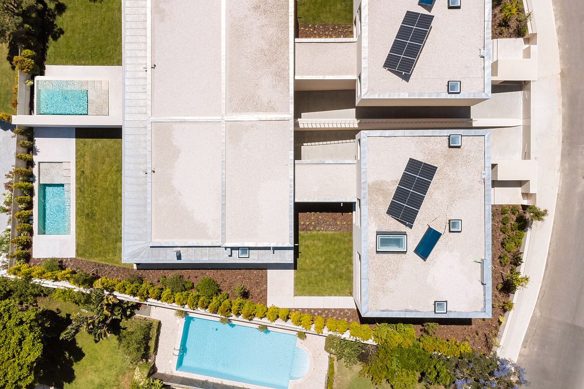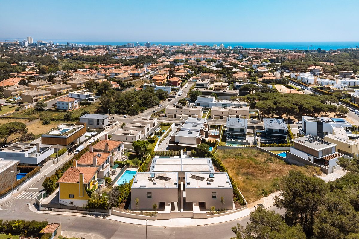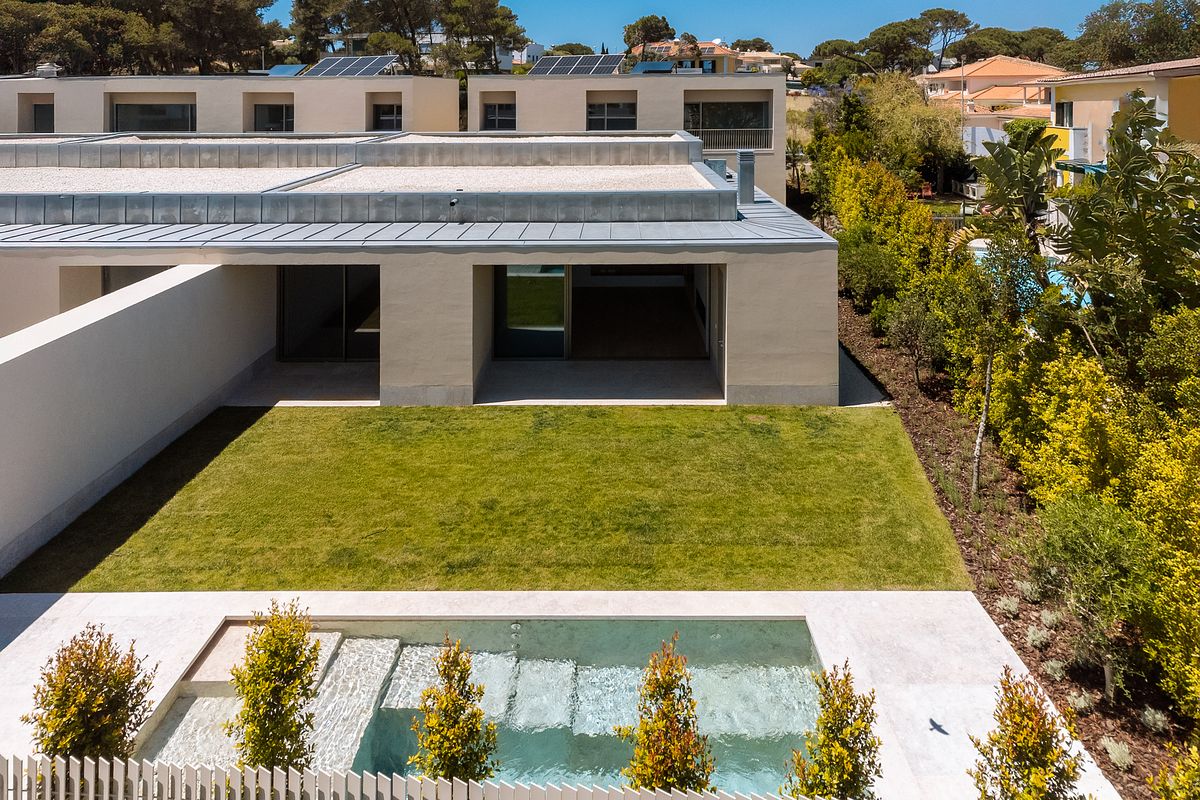 Cada moradia contempla piscina privativa, jardins e áreas exteriores com excelente exposição solar, garantindo total conforto e privacidade.