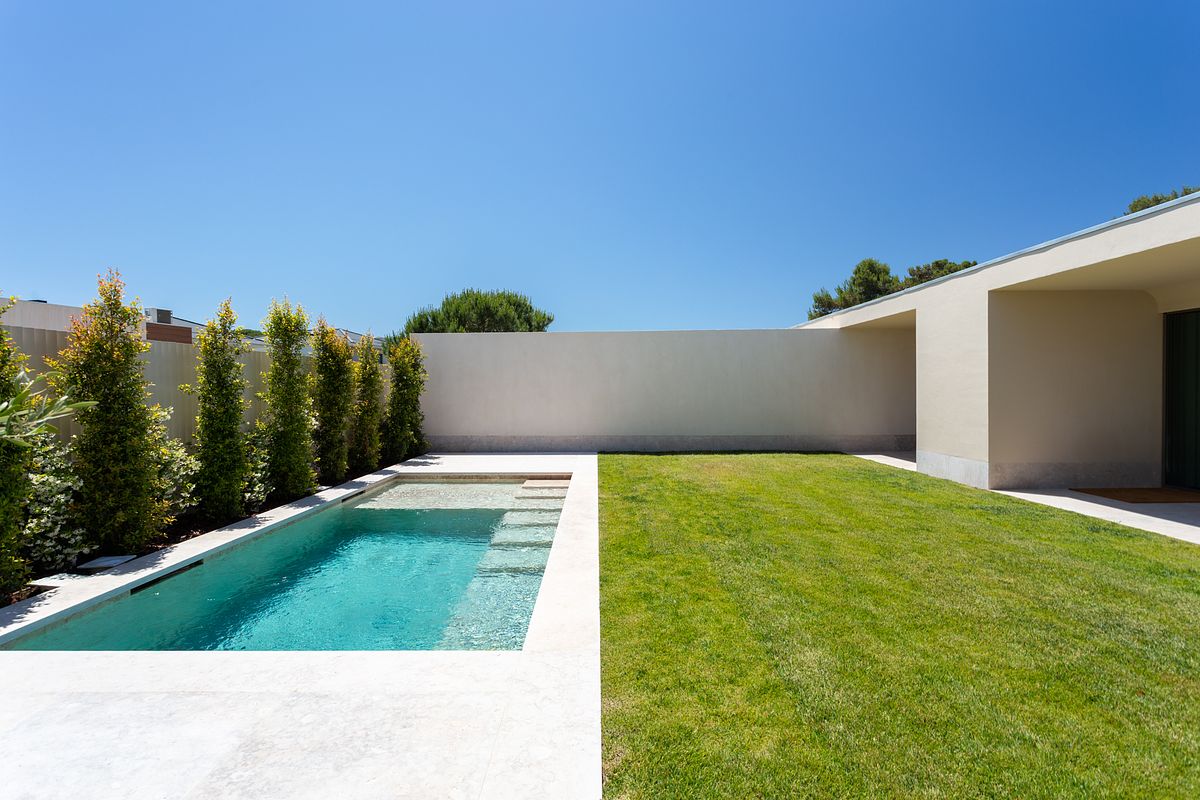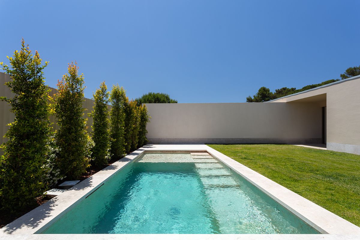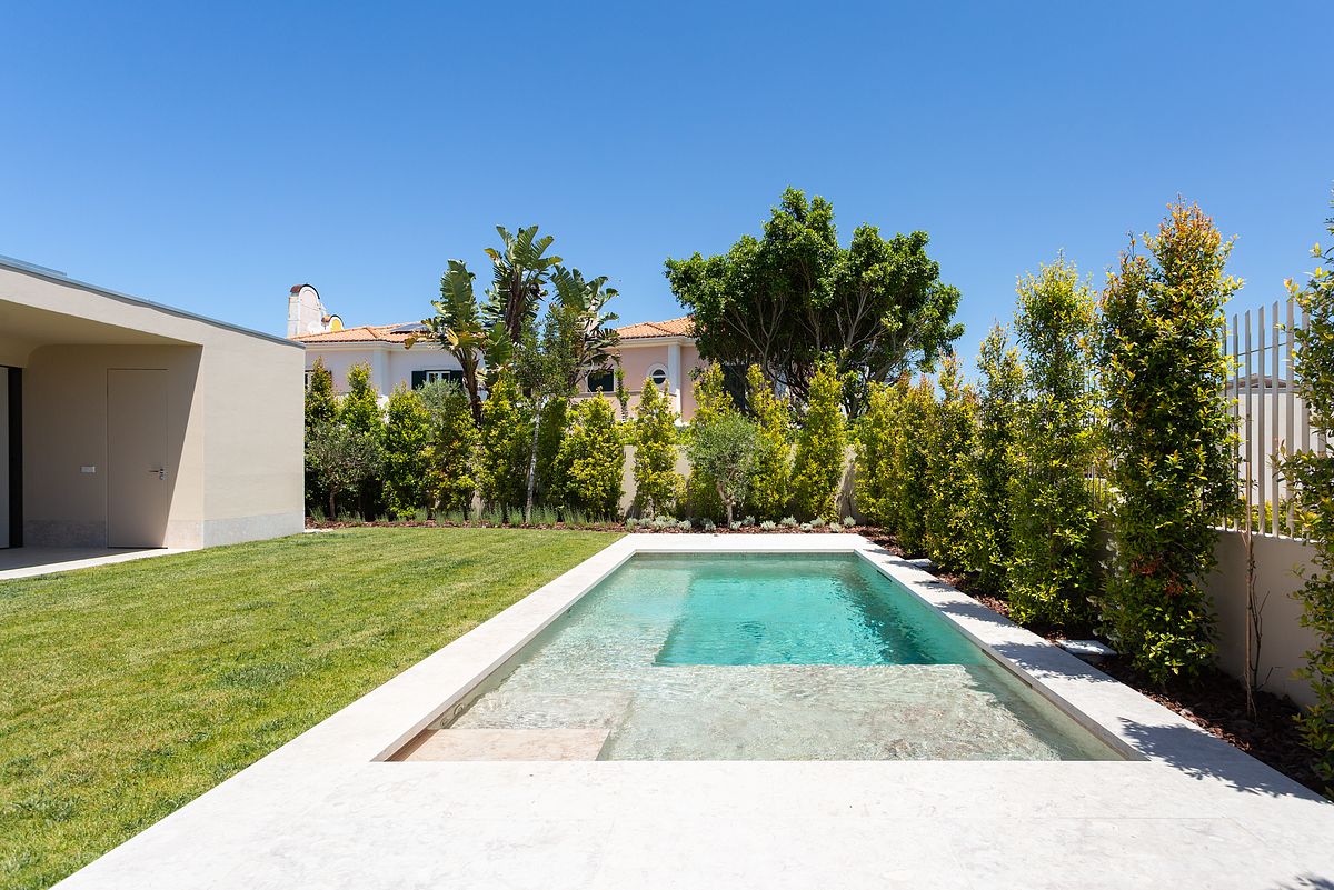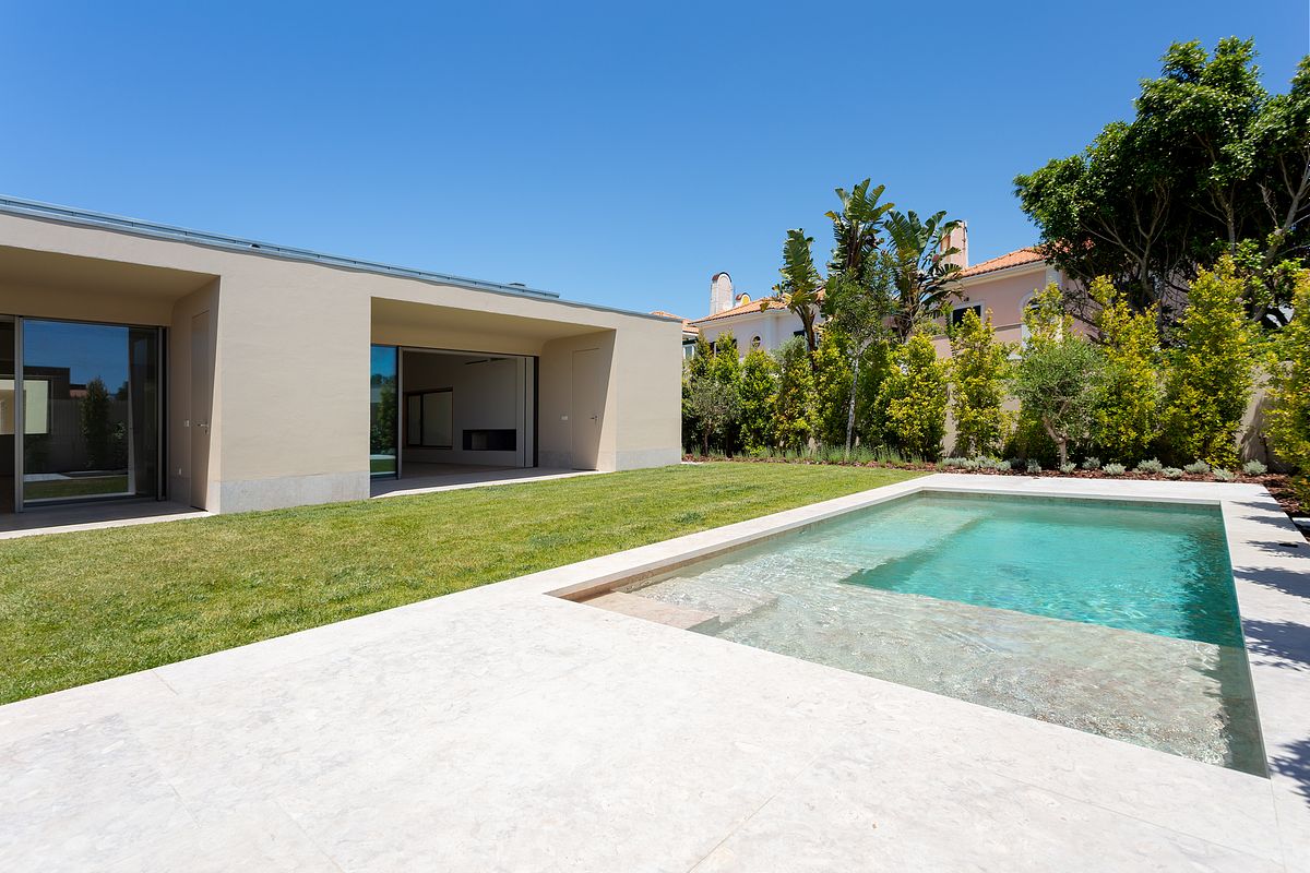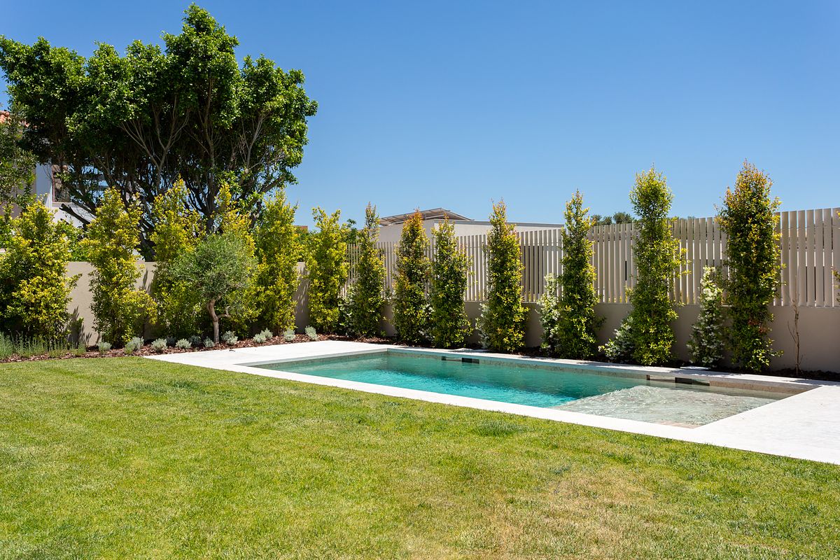 Cada moradia contempla piscina privativa, jardins e áreas exteriores com excelente exposição solar, garantindo total conforto e privacidade.