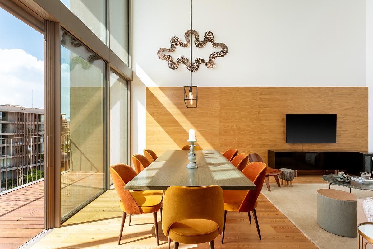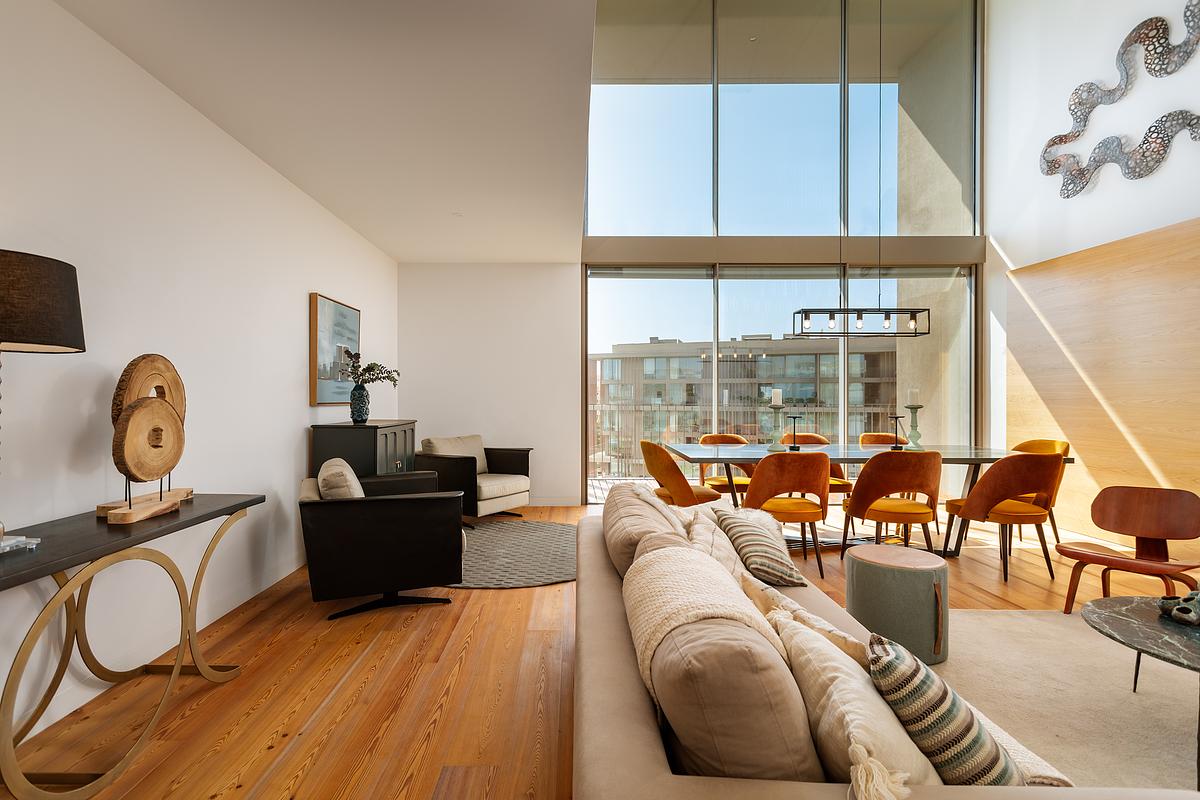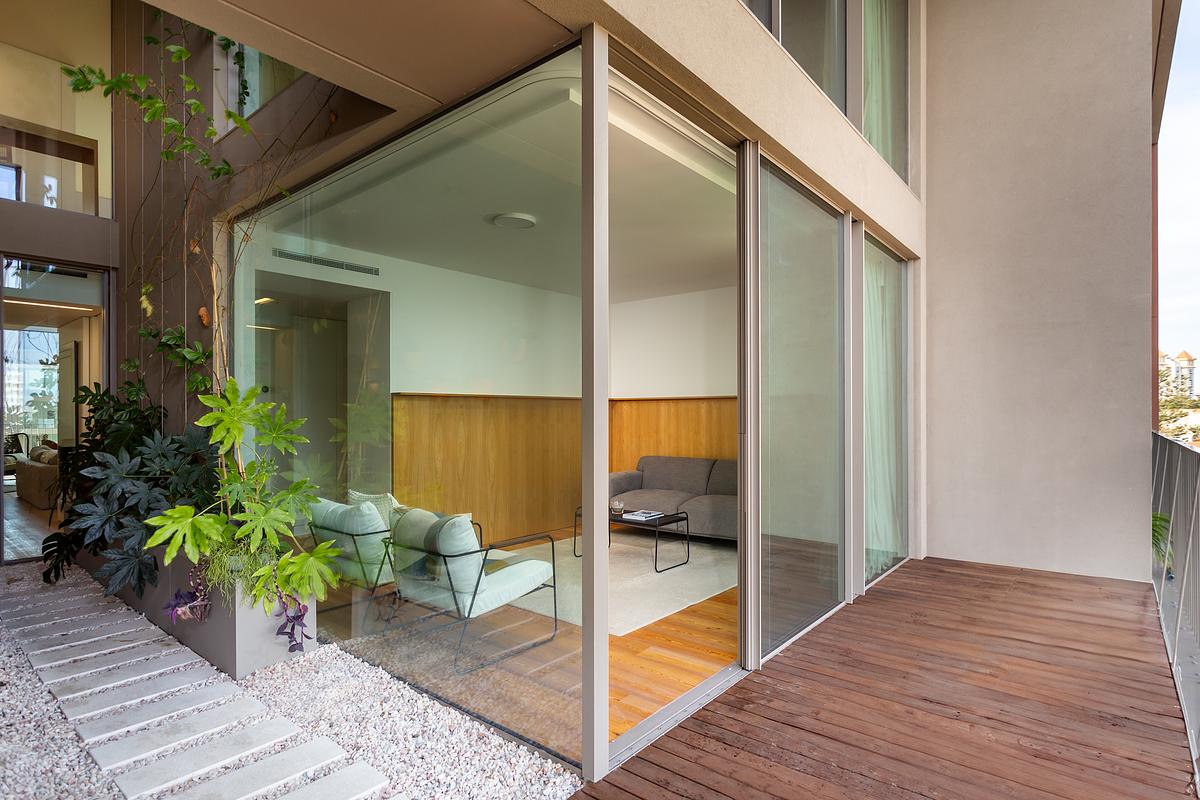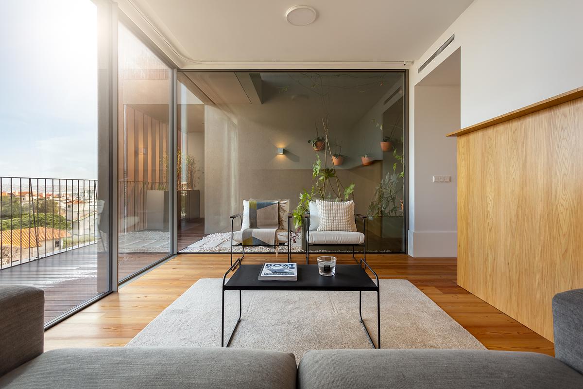 As áreas exteriores, incluindo varandas e vistas abertas sobre Cascais e o oceano, assumem um papel central na experiência do espaço, reforçando a ligação entre interior e exterior e contribuindo para um estilo de vida premium.